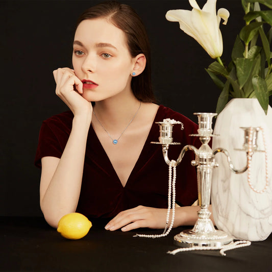 Birthstone Necklace for Women 925 Sterling Silver Necklaces March round Blue Aquamarine Crystal Pendant Gifts for Everyday Wear